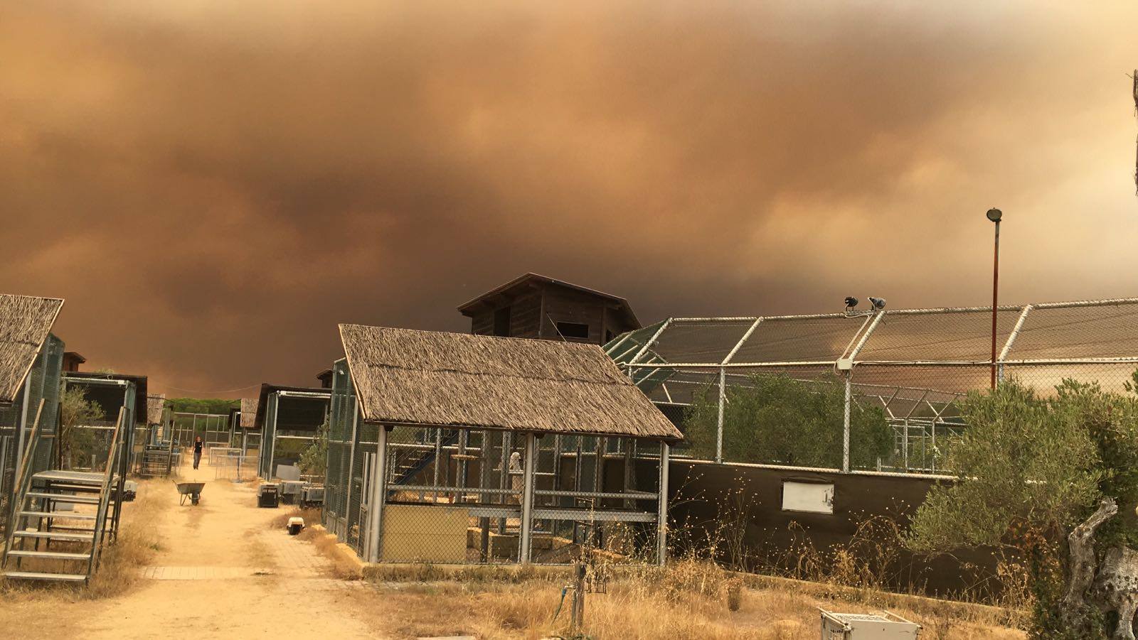 Según establece el protocolo ante esta situación, se han abierto las puertas de los recintos en los que se encuentran los animales, para que en el caso que el incendio afecte a las instalaciones, ya sea debido al fuego directo o por el humo generado, los animales puedan salir por sí mismos.